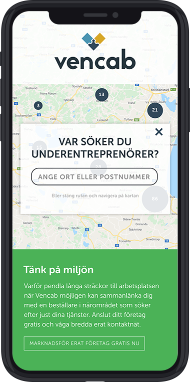 Varför pendla långa sträckor till arbetsplatsen när Vencab kan sammanlänka dig med en beställare i närområdet som söker efter just dina tjänster. Anslut ditt företag gratis och våga bredda ert kontaktnät.